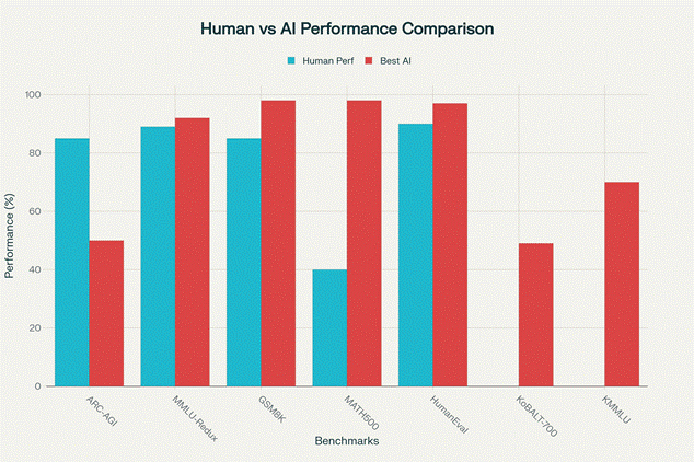 <AGI 평가 지표별 인간 대 AI 성능 비교>